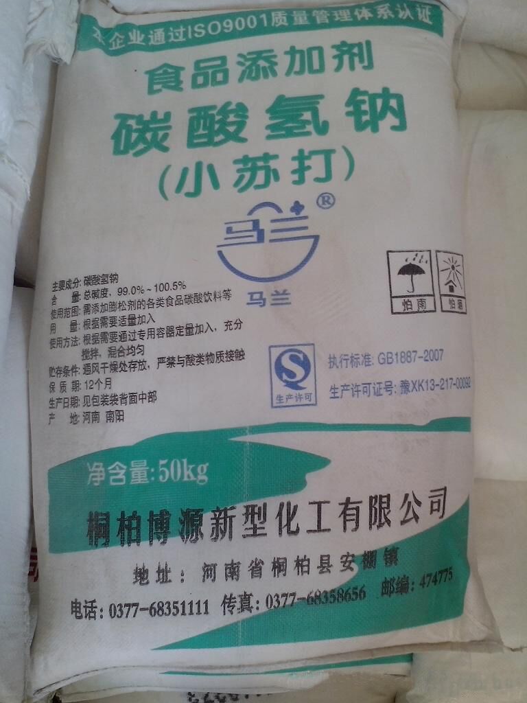 本產(chǎn)品為白色粉末,俗稱小蘇打,溶于水,水溶液呈堿性,它也是一種工業(yè)用化學(xué)品,固體50℃以上開始逐漸分解生成碳酸鈉、二氧化碳和水,270℃時完全分解。